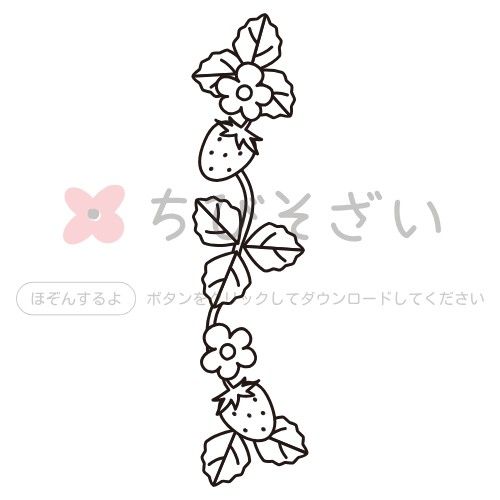 ライン イチゴの葉と花と実・縦
