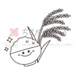 米袋と稲穂のイラストです。稲刈り、新米のイメージに。
